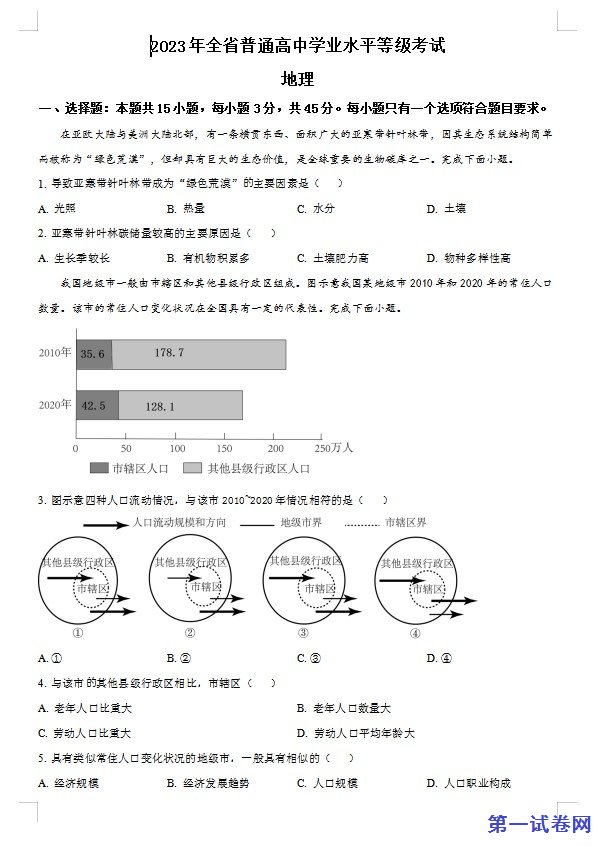 2023年山东高考地理真题(原卷版)下载。下面是预览图: