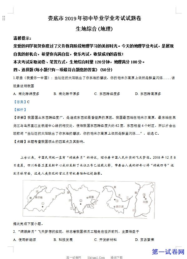 湖南省娄底市2019年中考地理试题(解析版)下载。试卷资源预览图如下: