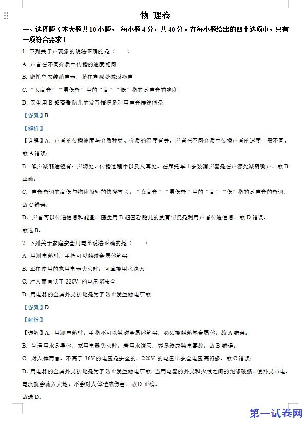 2023年黑龙江省大庆市中考物理试题(解析版)下载。试卷资源预览图如下: