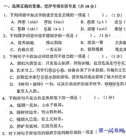 2020年六年级上册语文期末试题1部编版PDF有答案