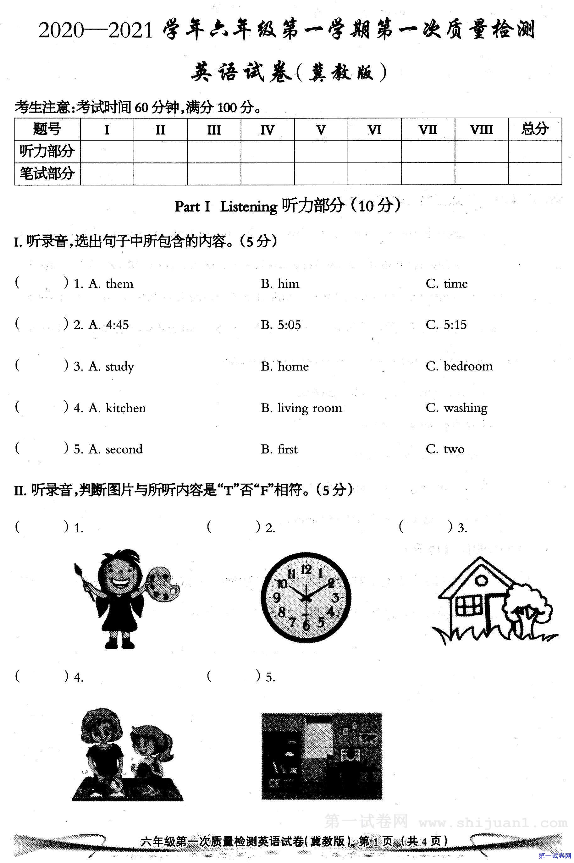 2020-2021学年六年级英语第一学期第一次整理检测试卷扫描版下载。预览: