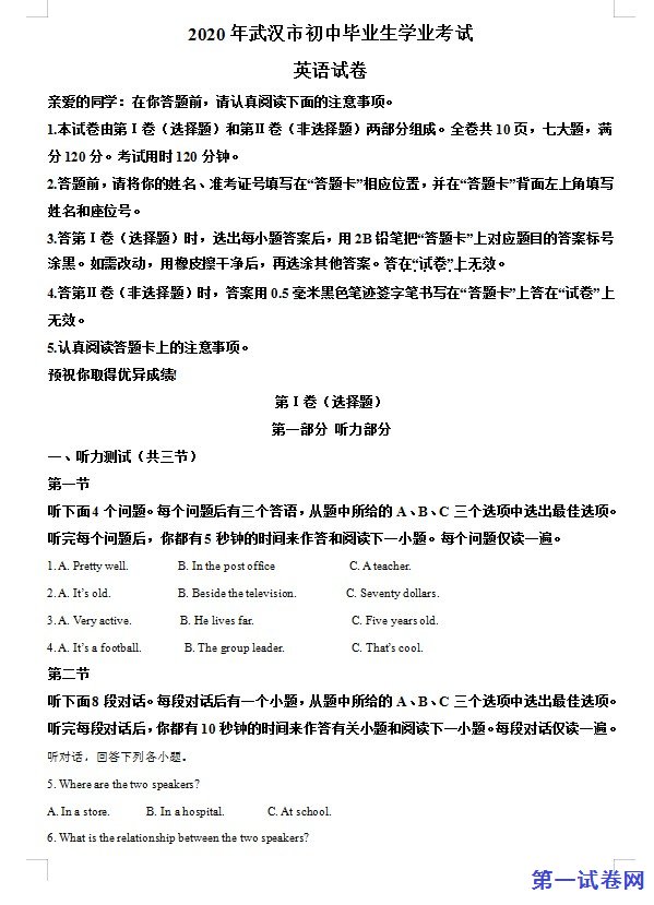 湖北省武汉市2020年中考英语试题(解析版)下载。试卷资源预览图如下: