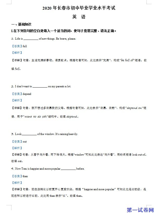 吉林省长春市2020年中考英语试题(解析版)下载。试卷资源预览图如下:
