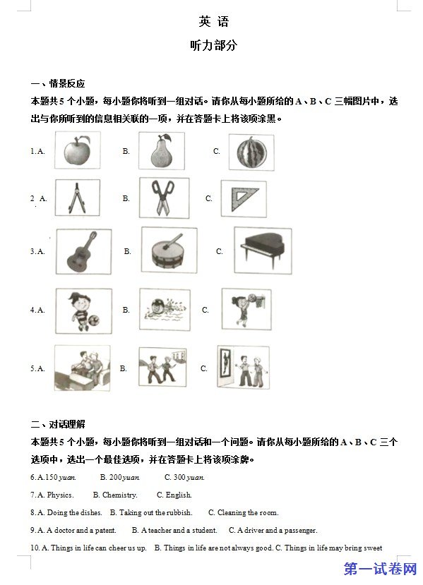 山西省2020年中考英语试题(原卷版)下载。试卷资源预览图如下: