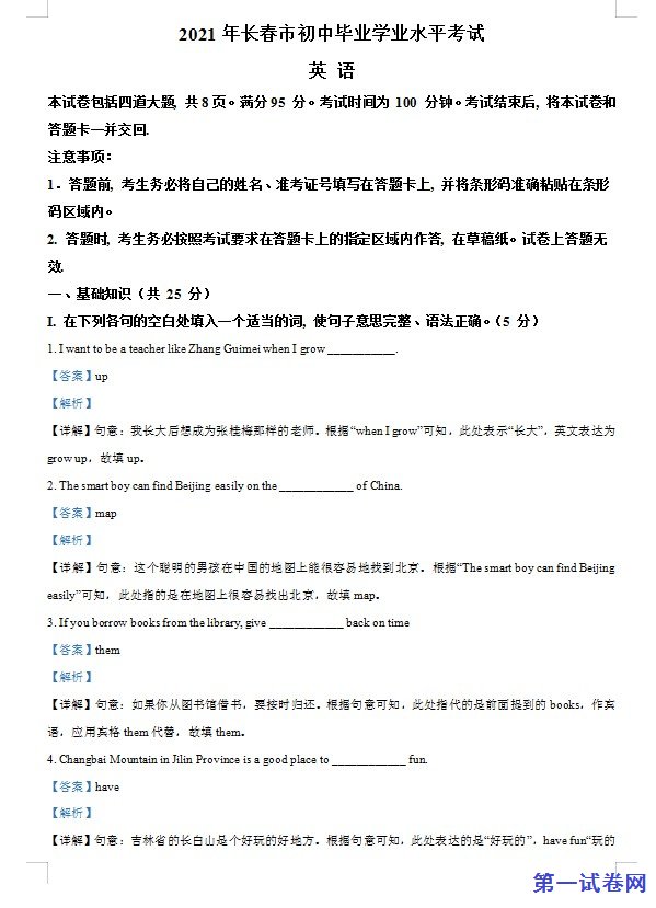 吉林省长春市2021年中考英语试题(解析版)下载。试卷资源预览图如下: