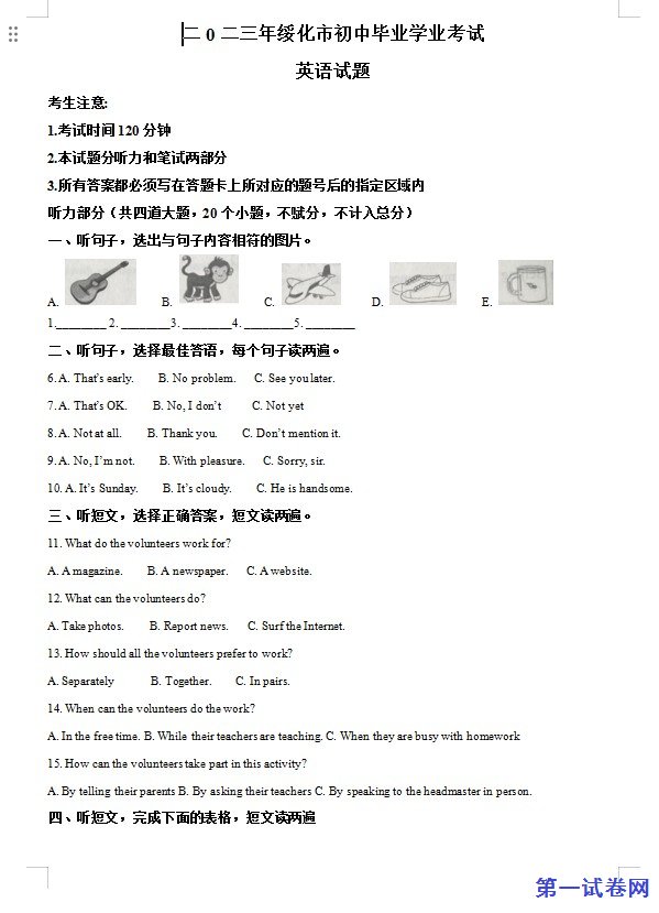 2023年黑龙江省绥化市中考英语真题(解析版)下载。试卷资源预览图如下: