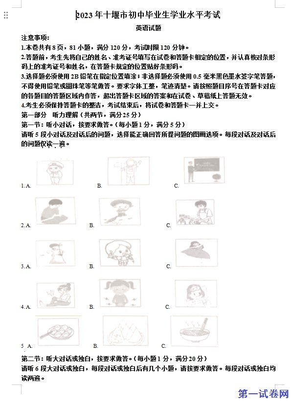 2023年湖北省十堰市中考英语真题(解析版)下载。试卷资源预览图如下: