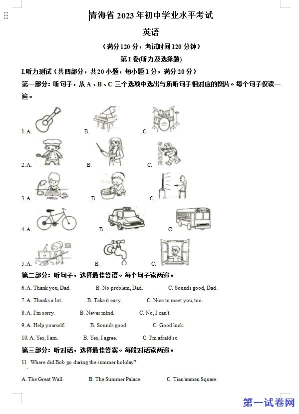 2023年青海省中考英语真题(原卷版)下载。试卷资源预览图如下: