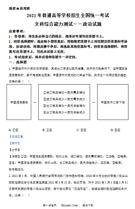 2021年全国统一高考政治试卷(新课标ⅰ)(含解析版)下载。